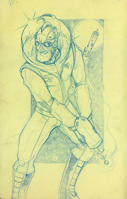 I wish I could say ... Today inspiration hit me like a Semi. But nope it did not. But I do have a nifty little thumbnail of a Ninja Turtle (my sketchbook is not my sketch book without at least ONE picture of a ninja turtle), and a recent work up sketch of The Patriot. I suggest you click on the Patriot link. I think his origins are worth reading about. Until tomorrow folks.